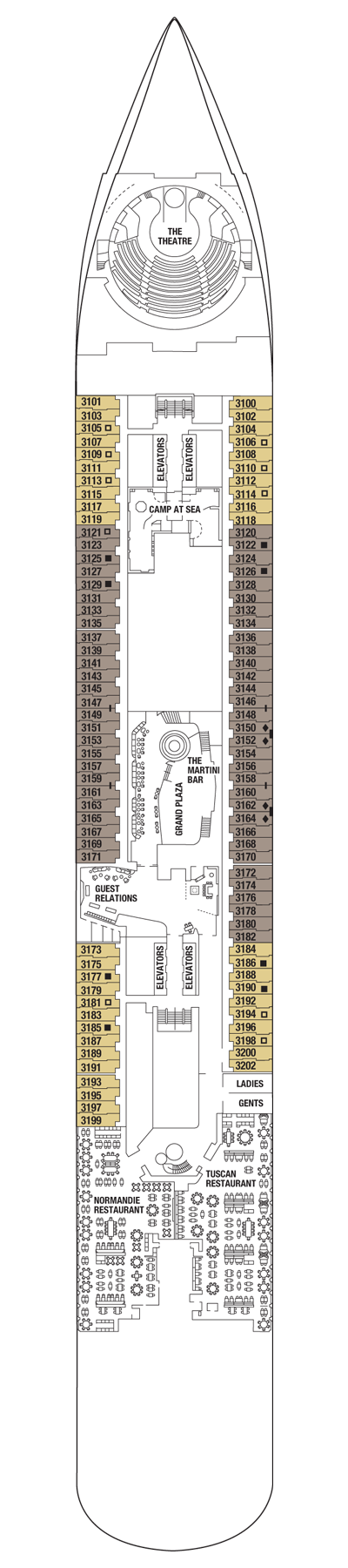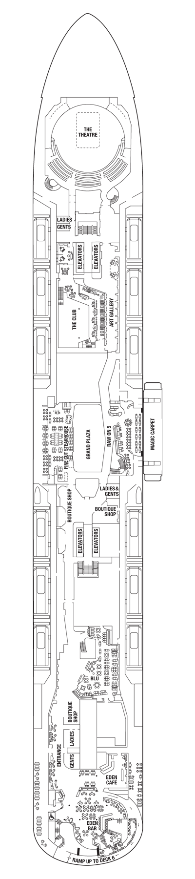 The industry-first Magic Carpet is both the best way to take in spectacular views and the most exciting place to be. By changing function and location, it provides an incredible array of visual perspectives and a distinct experience on every deck it visits.