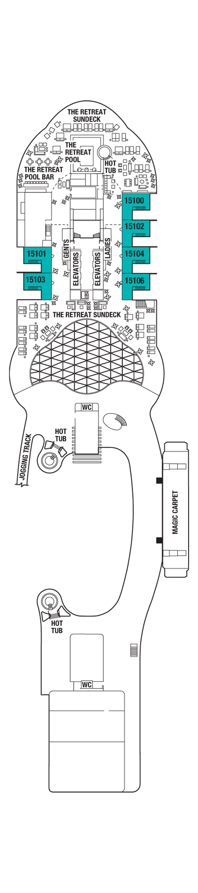 Suite Class guests enjoy exclusive access to the indulgent, inviting Pool Bar with private cabanas and plush loungers.