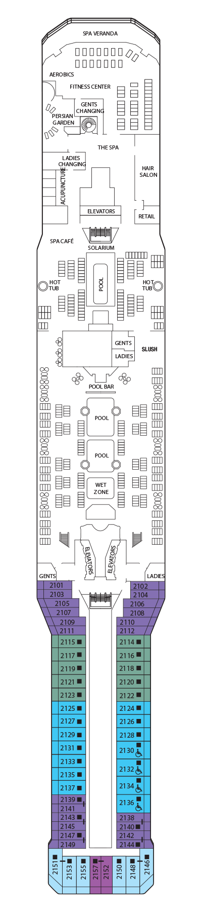 A freshly manicured lawn on the highest deck. Enjoy casual outdoor activities in a decidedly Country Club atmosphere, and let the grass between your toes take you places no cruise has gone before.