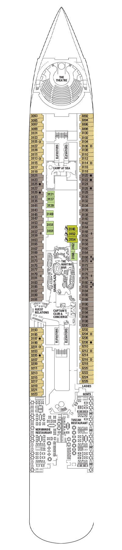 A new multi-purpose area that brings our destinations to life, The Destination Gateway is a portal that leads to all things global through onshore exploration and onboard enrichment. When not in use as a embarkation station, the space is transformed into an intimate setting for programming centered on destination immersion, shore excursions, and more.