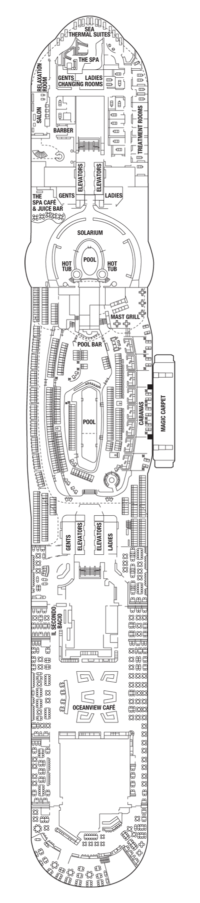 The industry-first Magic Carpet is both the best way to take in spectacular views and the most exciting place to be. By changing function and location, it provides an incredible array of visual perspectives and a distinct experience on every deck it visits.